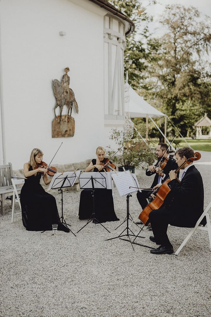 Begleitet von einem romantischen Streichquartett, rührte die feierliche Trauung die Gäste zu Tränen.